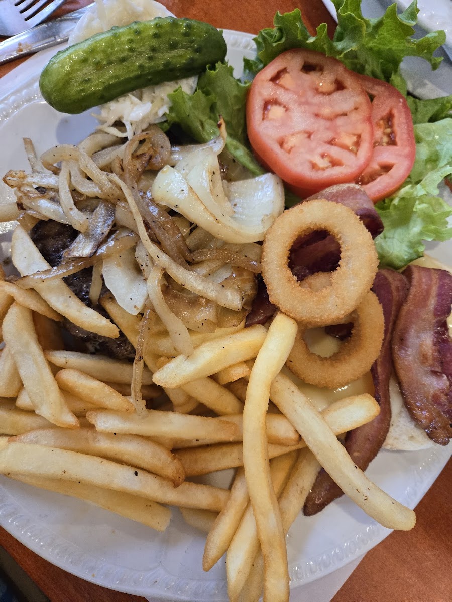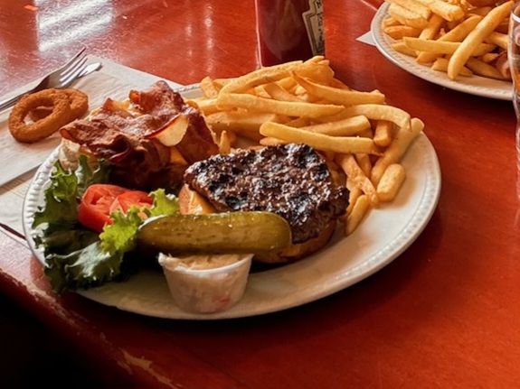 Plenty food to fill my stomach at a decent price. My friend had the cheeseburger deluxe and I had the grilled chicken bacon sandwich. Very nice setting and relaxing. Was very clean especially the bathrooms. Also has 2 parking lots so that shouldnt really be an issue unless they are extremely busy on that specific day