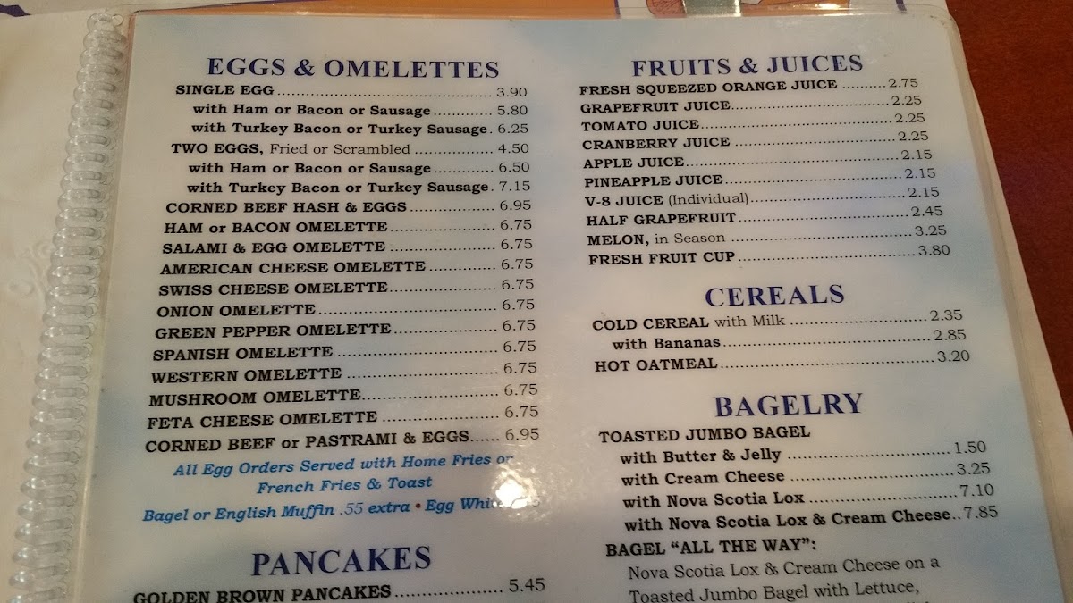 - Fresh Juices: Kick-start your meal with freshly squeezed orange juice ($2.85) or treat yourself to a refreshing fresh fruit cup ($4.50).